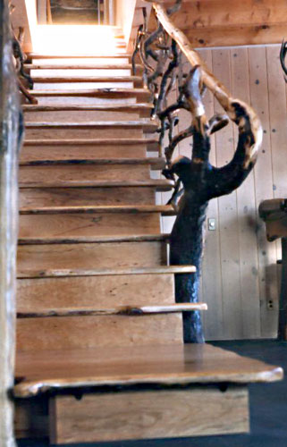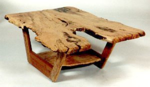 “All the work you see here is made right at our workshop and showroom in Boiceville, NY. We do our own logging, looking for trees too big and misshapen to be feasible for other loggers. Many of the trees we use are rotten or dead, and both of these “defects” produce incredible grain patterns. We bring the trees back to the shop and decide if they should be cut on the conventional sawmill, which can cut only 19″ wide, or the chainsaw mill, which requires more man power but can cut a board up to 50″ inches wide. Some of our tables are made from one piece of wood, 30″ to 50″ wide, which is unheard of anywhere else.