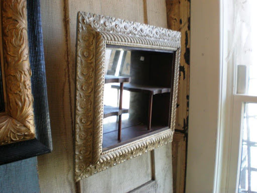 vintage mirrors hang along the stairs too.