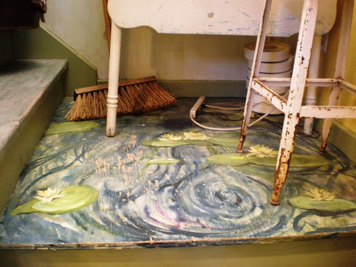 a gorgeous monet-like painting on a stair landing.