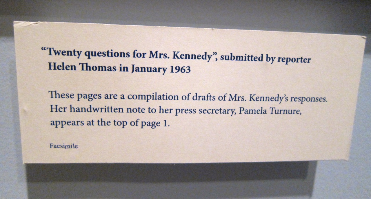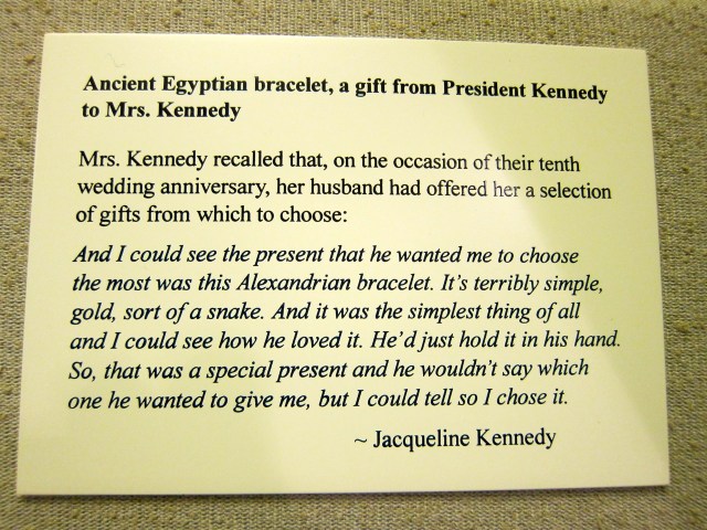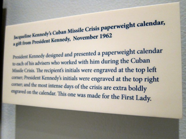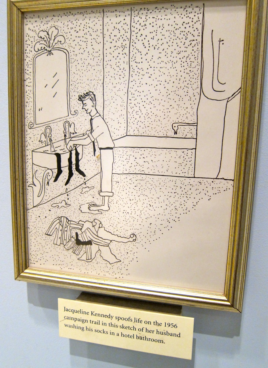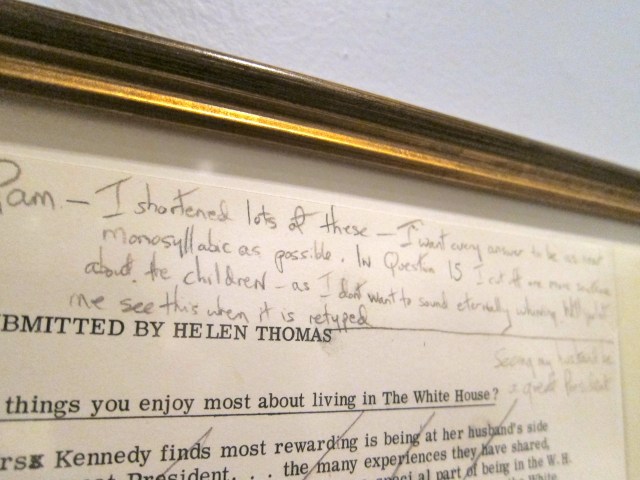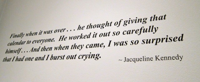 Here’s another favorite piece, below. The First Lady’s words that accompany it make the Kennedys seem like any other couple, in some ways. Her words did that often throughout the museum. She seemed focused on making sure the library told their story with as much personal detail as possible.