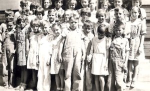 I can’t stop looking at this picture and wondering what happened to all these people. What a crew! This was in a tiny Iowa town, which my mom and her brother completely took by storm. She’s the one on the right end, second row. He’s next to her. Not sure if he’s toying with the lad in front of him, or doing the ear-pulling out of meanness. Somehow I get the feeling mom told him to do it.