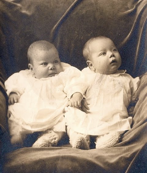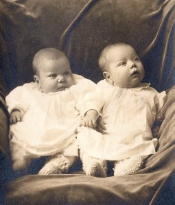 The twins. No question which one is more alert and curious–Betty, on the left. She’s already glaring at her mother, I just know it.